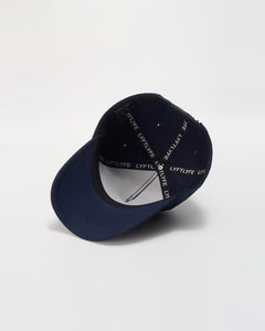 This A-frame snapback is for the unbreakable. Iron Tide in blue represents power that ebbs and flows like the ocean steady controlled and built to last.